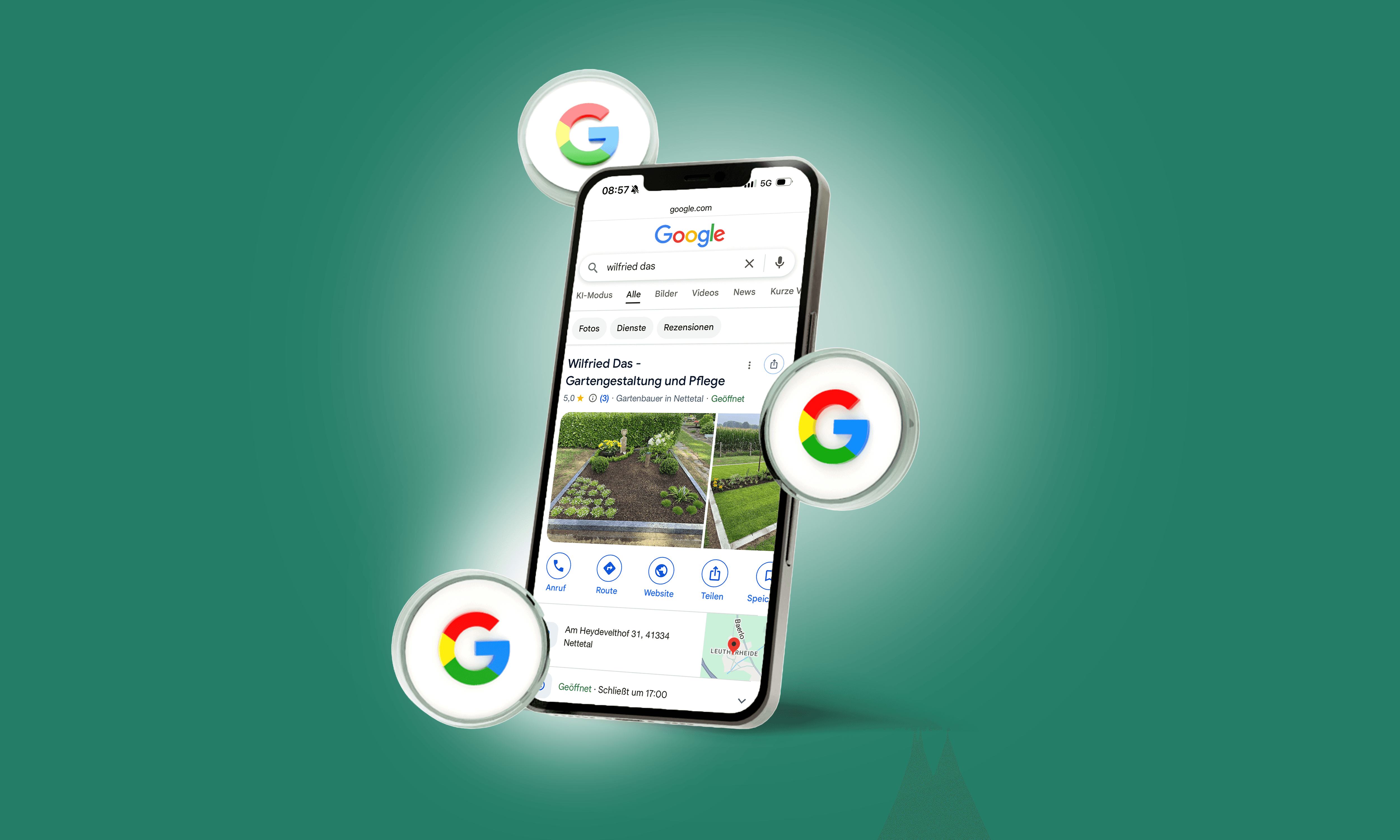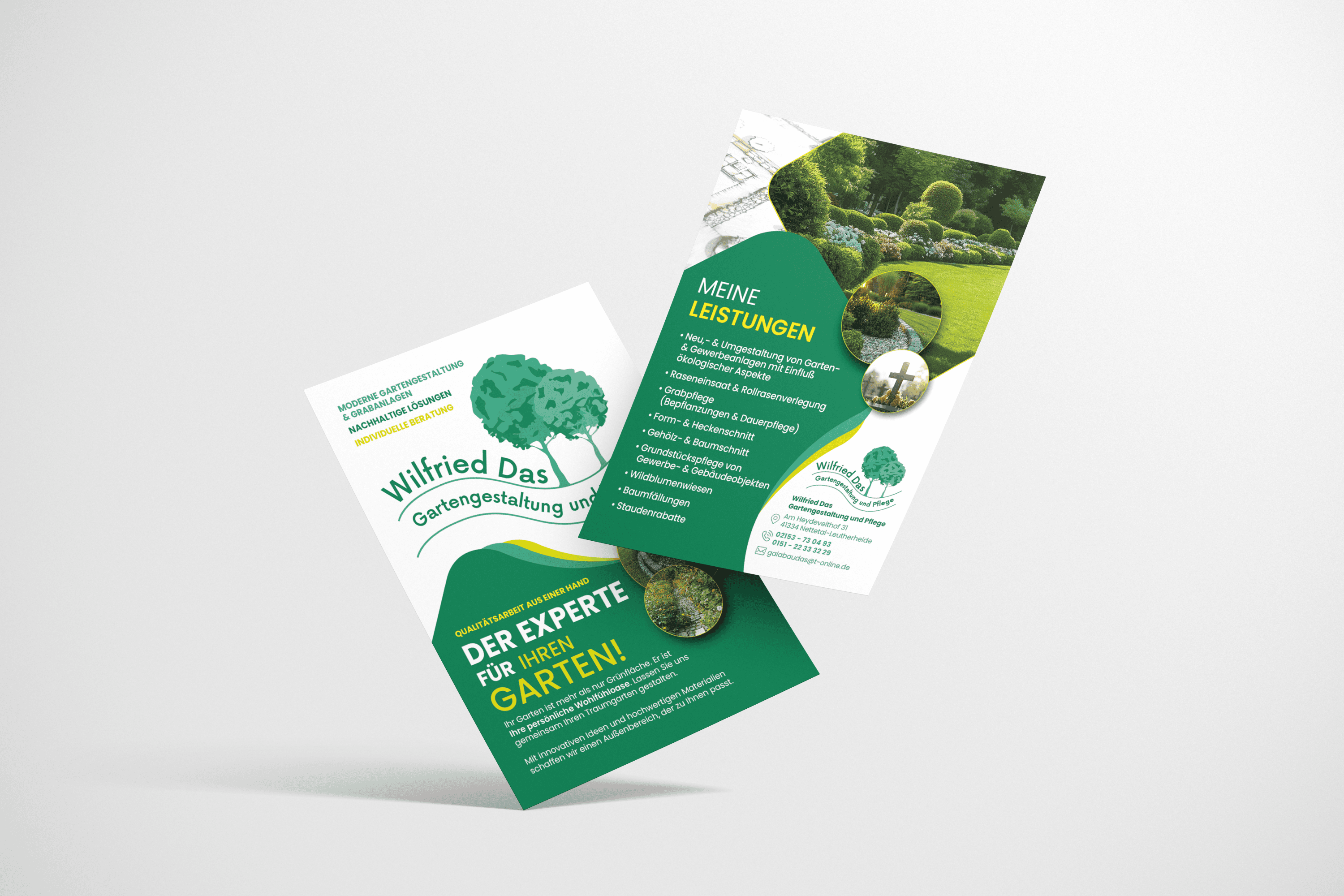Das Ergebnis ist ein klarer, moderner Markenauftritt, der sowohl offline als auch online überzeugt. Durch den abgestimmten Einsatz von Printmaterialien, Google-Präsenz und Landingpage verfügt Galabau DAS nun über eine solide Basis für nachhaltige Kundengewinnung und eine deutlich gesteigerte Sichtbarkeit im regionalen Markt.